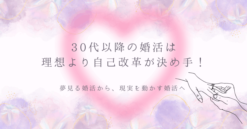 - 30代からの婚活は【自己改革】が決め手!理想だけでは幸せをつかめない理由 - 2025年10月30日