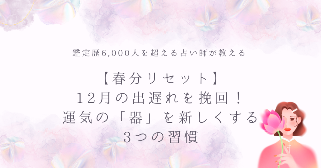 - 【春分リセット】12月の出遅れを挽回!運気の「器」を新しくする3つの習慣 - 2026年3月16日